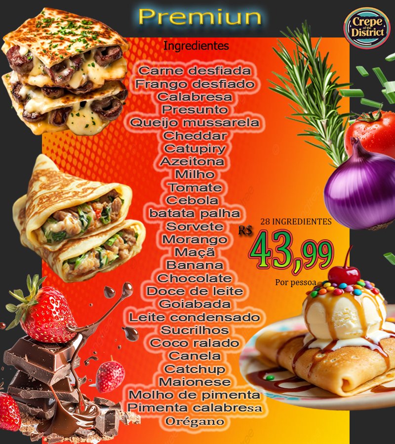 E o melhor de tudo? Você é o chef! Use sua criatividade para montar seu crepe perfeito !