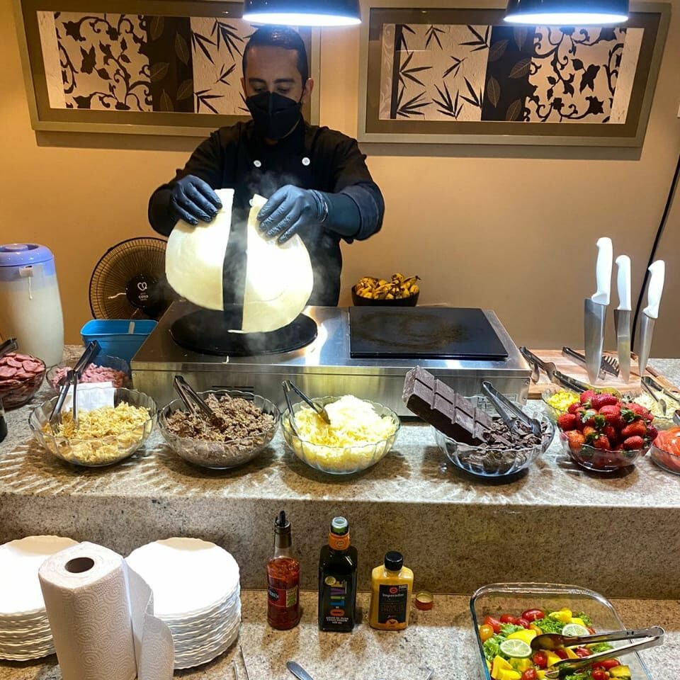 Se você está procurando por uma opção de evento flexível e sofisticada, um buffet de crepes é a escolha perfeita! Nossa equipe de chefs especializados prepara uma variedade de opções deliciosas para atender às suas necessidades e preferências.