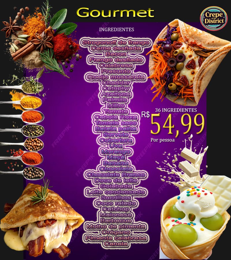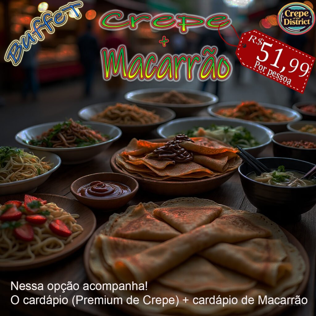 Escolha o Crepe do distrito para uma experiência gastronômica inesquecível! Nossa equipe de chefs especializados prepara crepes frescos e deliciosos na hora e na presença dos convidados , com ingredientes de primeira qualidade e apresentação impecável.